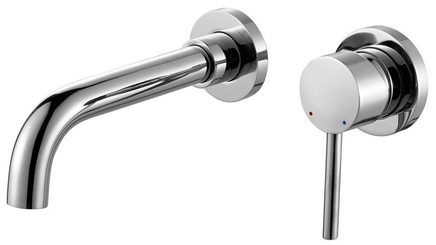 Раздельный смеситель из стены, с удобной поворотной ручкой для регулировки температуры выходящей воды. Выполнен в современном стиле, а так же макси.