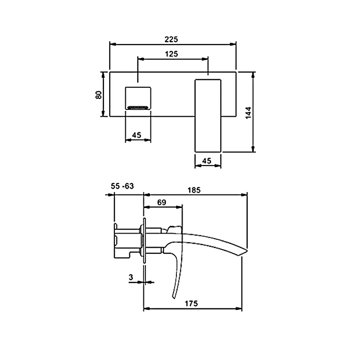 - Длина излива, мм: 185