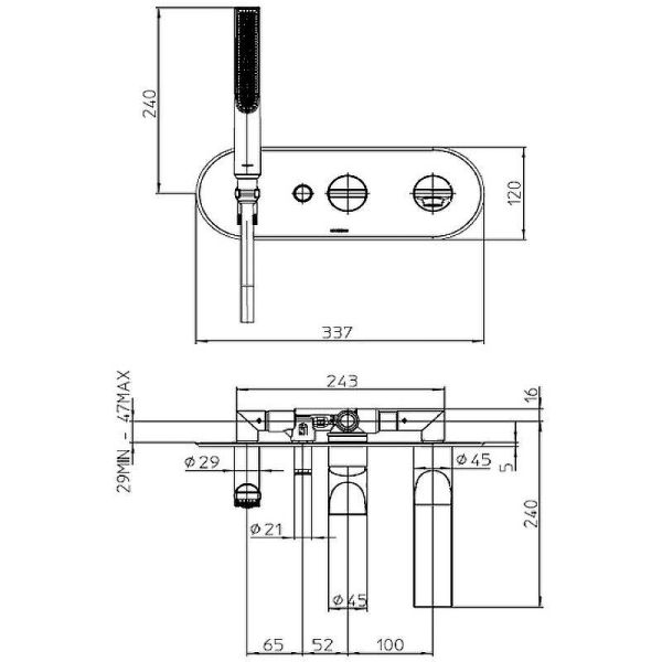 Смеситель для ванны Bossini Apice — это практичное и стильное решение для вашего пространства. Продукт оснащен кнопочным переключателем, который позволяет легко выбирать между двумя выходами воды, обеспечивая удобство в использовании. Длина излива составляет 207 мм, что идеально подходит для комфортного мытья и использования ручного душа. Ручной душ Slim располагается на фиксированном держателе, что добавляет удобства при купании и позволяет легко фиксировать его в нужном положении.