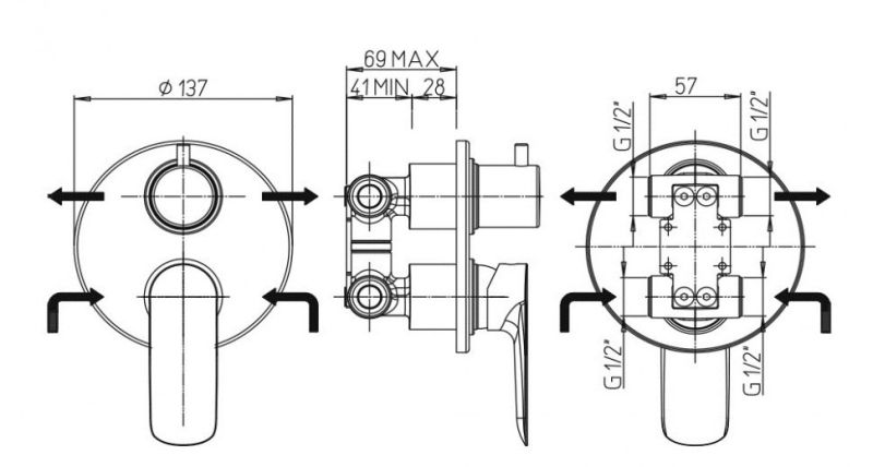 - Встраиваемый монтаж скрывает все соединения и оставляет на виду только рычаг управления, что добавляет в интерьер дизайнерский акцент, экономя пространство.
