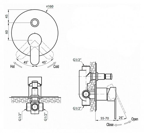 Тип подводки: внутренний (скрытый) монтаж 1/2"