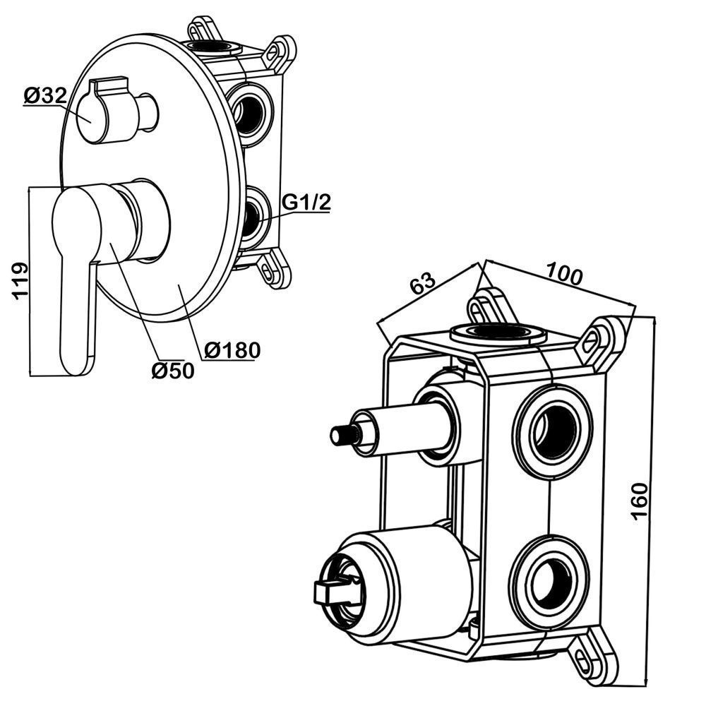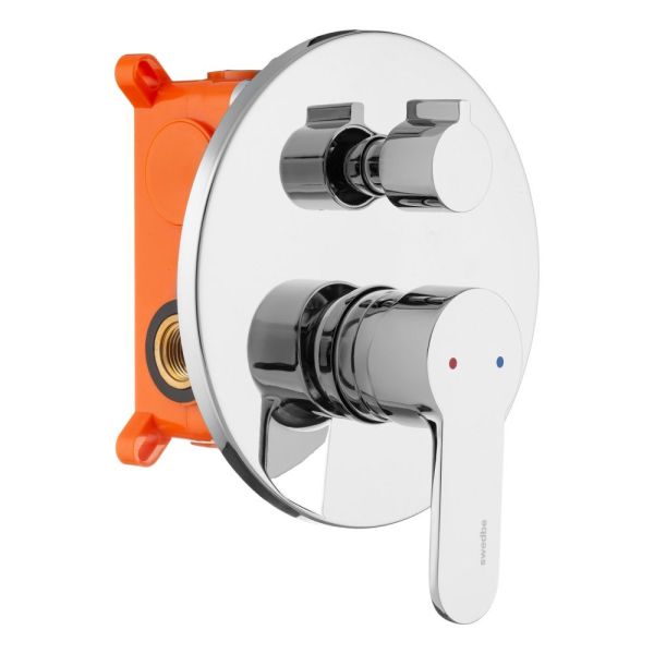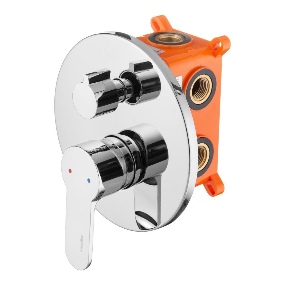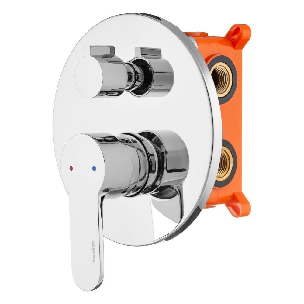 Смеситель Swedbe Platta 5521Cмеситель встраиваемый с подключением на 3 выхода. Полный комплект установки (комплект скрытого монтажа и наружная часть смесителя). Керамический картридж Sedal. Керамический дивертор. Смеситель изготовлен из гигиенически стабильной латуни с высоким содержанием меди.