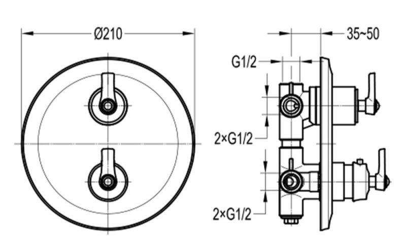 Встраиваемый смеситель Swedbe Terracotta Art 2521 термостатический с подключением на три выхода бронза купить