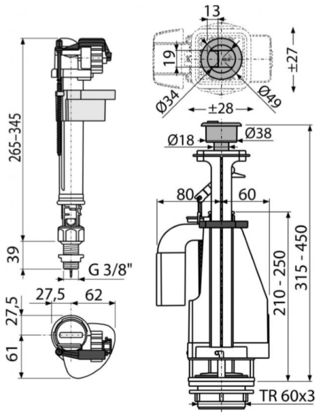 - Конструкция позволяет регулировать высоту механизма в зависимости от высоты бачка