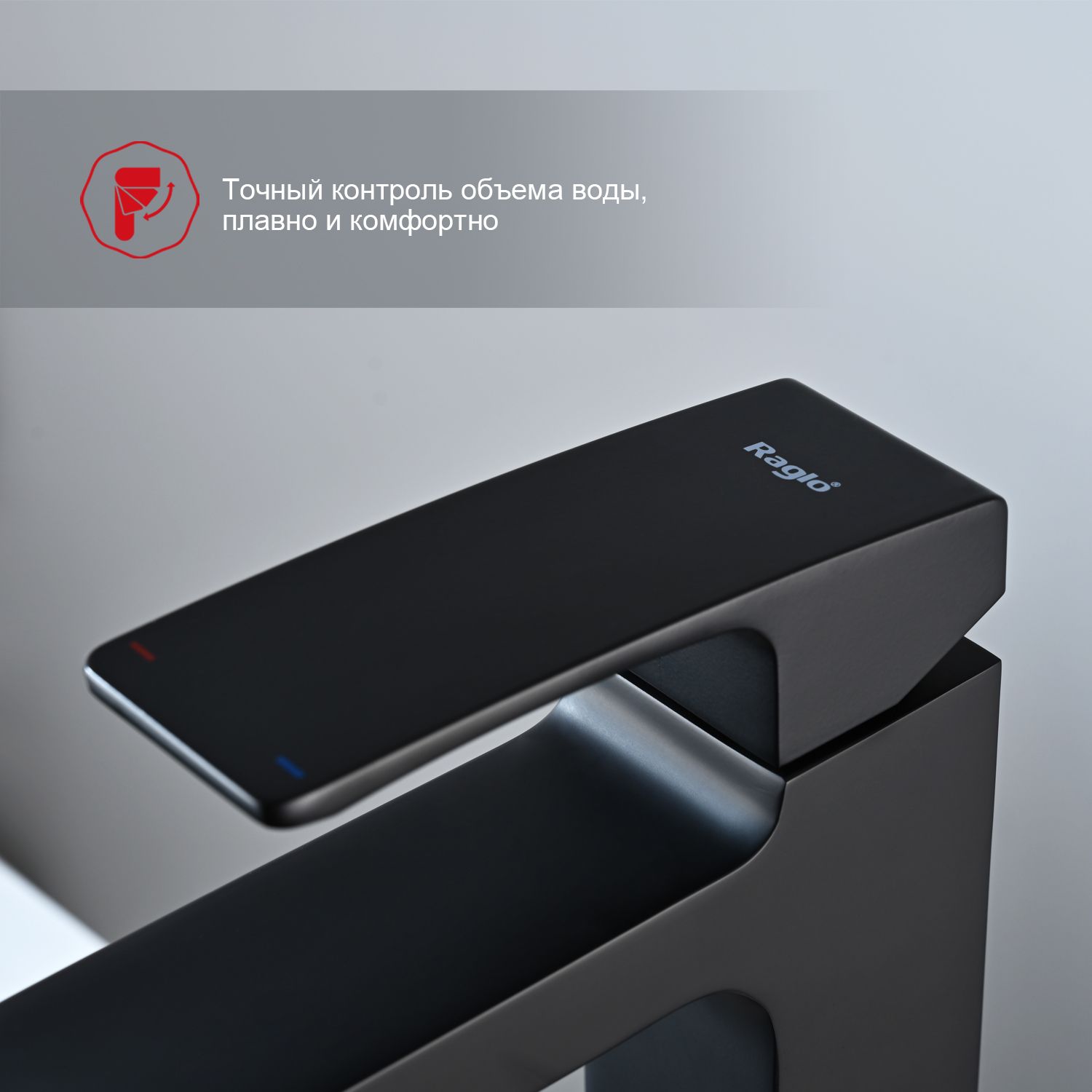 Смеситель для раковины Raglo R01.15.06, черный. Смеситель для раковины RAGLО имеет повышенную прочность корпуса. Соответствует требованиям международного стандарта. Одна рукоять для регулировки воды. Аэратор гарантирует одинаковый поток воды, сеточка рассеивает напор, вода смягчается. Смеситель устанавливается на гайке, нижняя часть смесителя вставляется в отверстие для монтажа и затягивается гайкой для фиксации. Данный смеситель для умывальника имеет надежный стационарный излив, не меняющий своего положении. Смеситель прекрасно смешивает потоки воды, а помимо этого обладает невысоки показателем шумов. Быстрый монтаж.Гарантия производителя 7 лет.