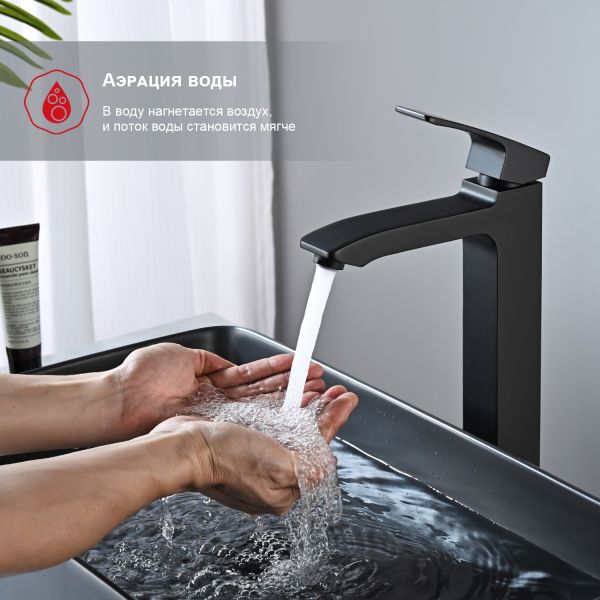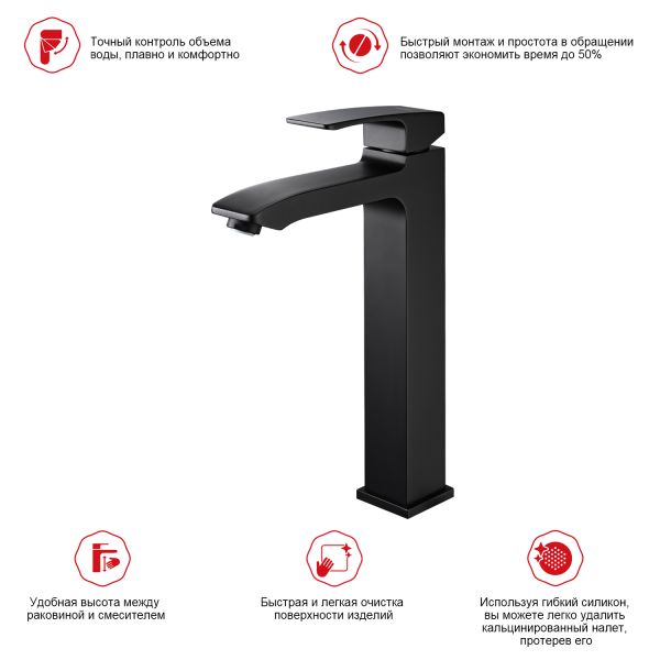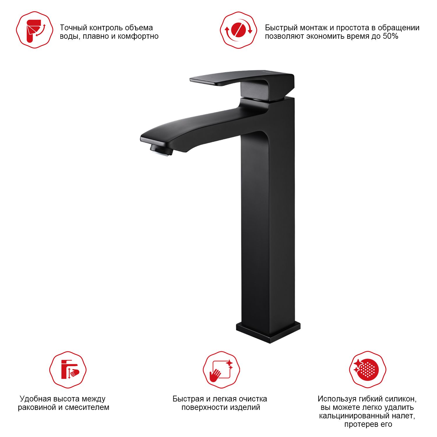 Высокий смеситель для раковины Raglo R01.15.06 чёрный купить