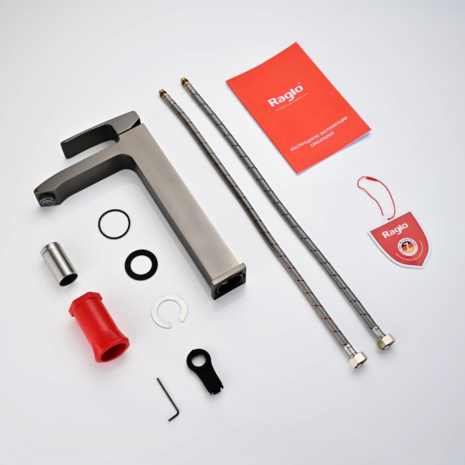 Смеситель для раковины Raglo R01.15.09, графит. Смеситель для раковины RAGLО имеет повышенную прочность корпуса. Соответствует требованиям международного стандарта. Одна рукоять для регулировки воды. Аэратор гарантирует одинаковый поток воды, сеточка рассеивает напор, вода смягчается. Смеситель устанавливается на гайке, нижняя часть смесителя вставляется в отверстие для монтажа и затягивается гайкой для фиксации. Данный смеситель для умывальника имеет надежный стационарный излив, не меняющий своего положении. Смеситель прекрасно смешивает потоки воды, а помимо этого обладает невысоки показателем шумов. Быстрый монтаж.Гарантия производителя 7 лет.