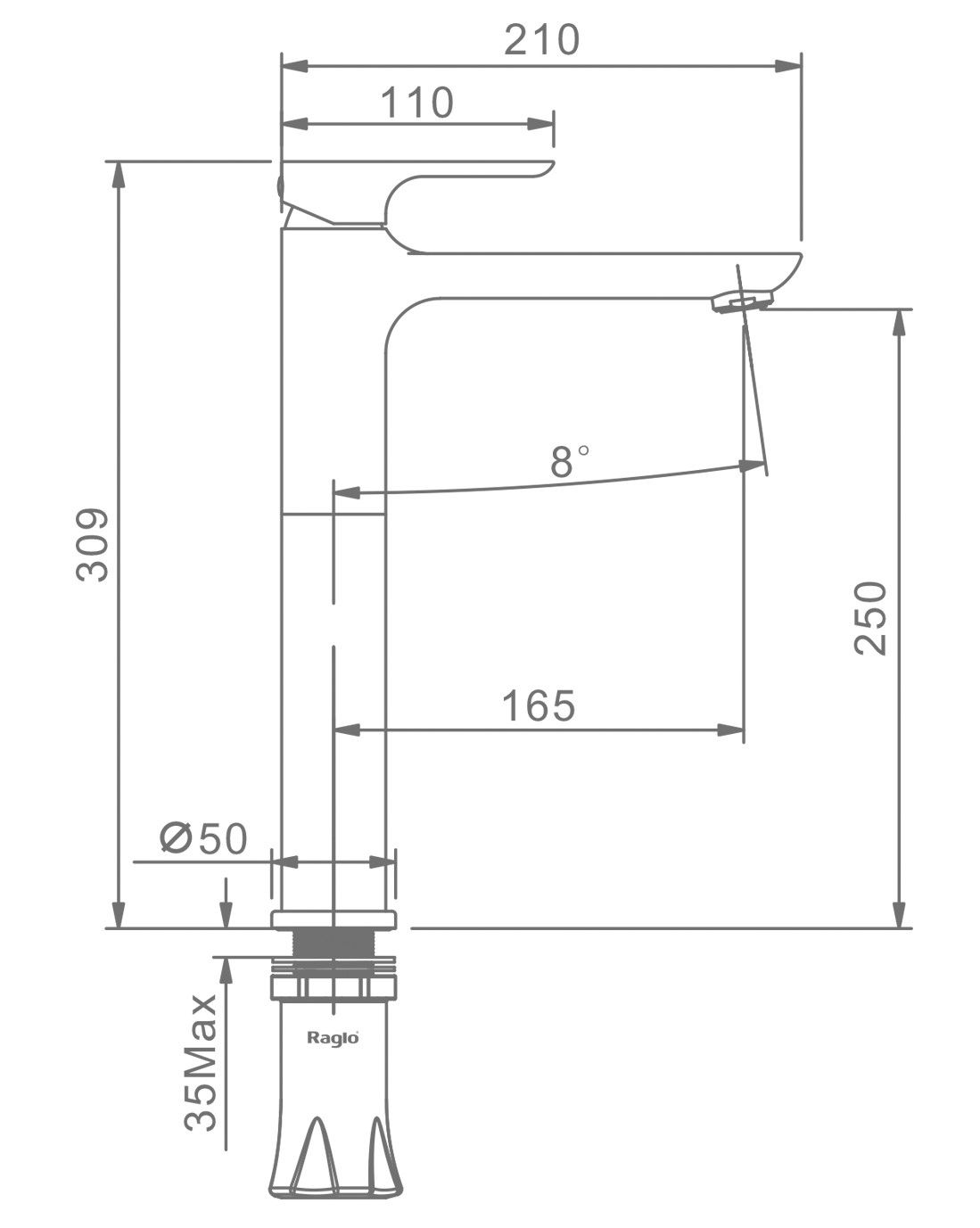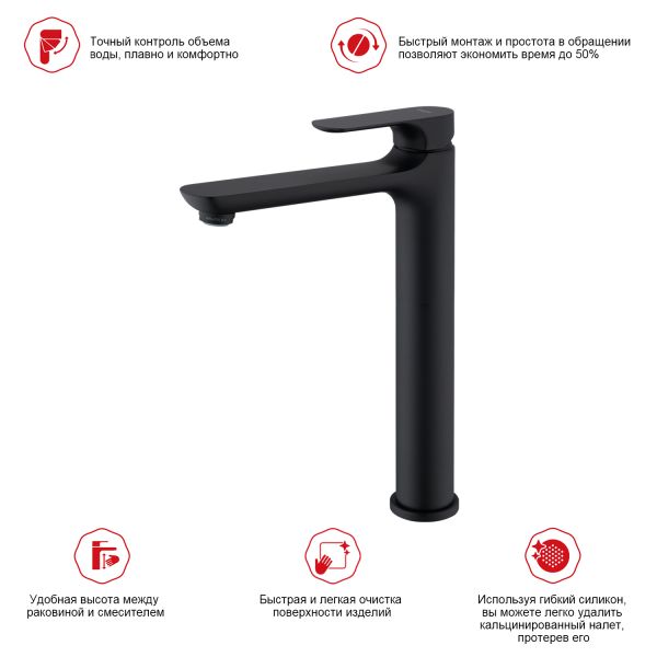 Высокий смеситель для раковины Raglo R03.15.06 чёрный купить