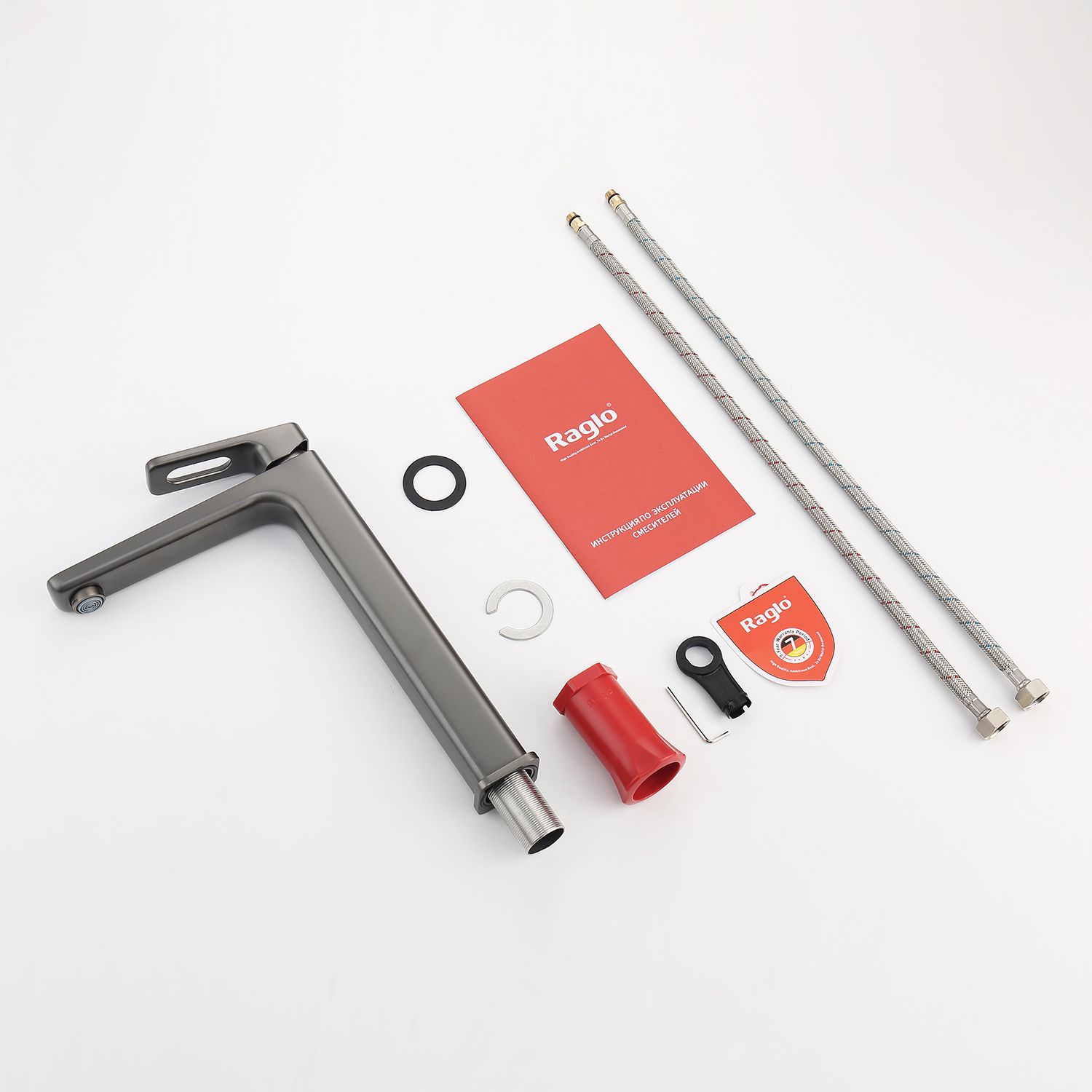 Смеситель для раковины RAGLО имеет повышенную прочность корпуса. Соответствует требованиям международного стандарта. Одна рукоять для регулировки воды. Аэратор гарантирует одинаковый поток воды, сеточка рассеивает напор, вода смягчается. Смеситель устанавливается на гайке, нижняя часть смесителя вставляется в отверстие для монтажа и затягивается гайкой для фиксации. Данный смеситель для умывальника имеет надежный стационарный излив, не меняющий своего положении. Смеситель прекрасно смешивает потоки воды, а помимо этого обладает невысоки показателем шумов. Быстрый монтаж. Гарантия производителя 7 лет. Полая ручка, ручка-петелька.