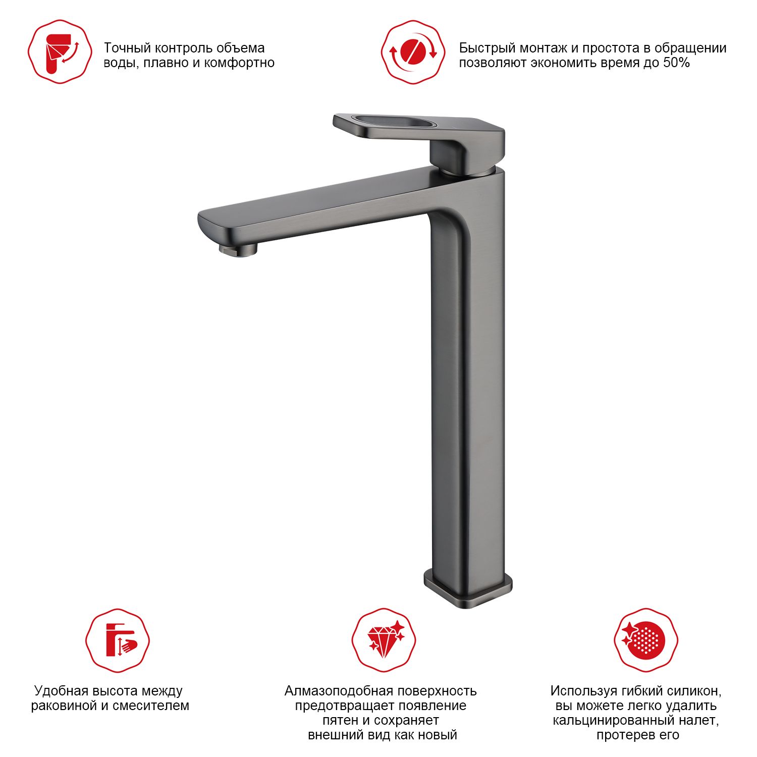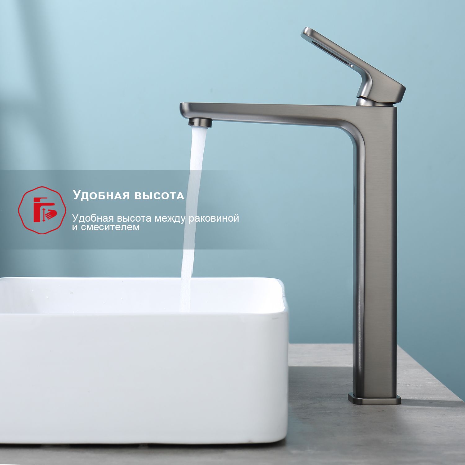 Высокий смеситель для раковины Raglo R51.15.09 графит купить