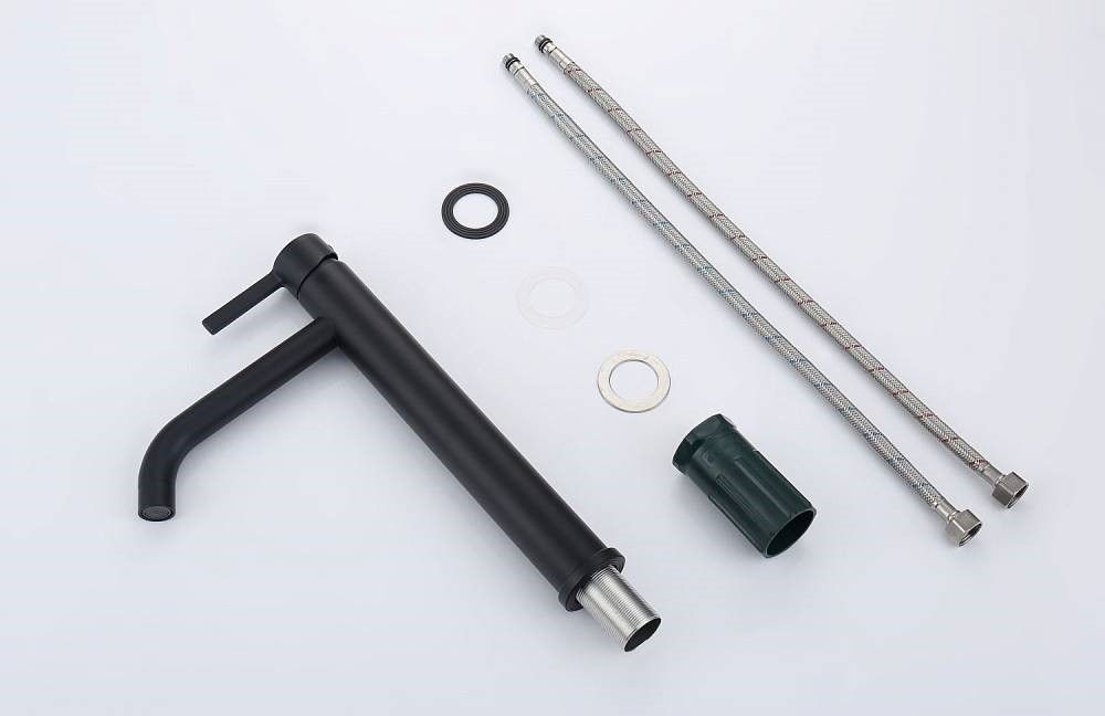 Смеситель для раковины Splenka S221.15.06, черный. Смеситель высокий для раковины нержавеющая сталь, округлой формы. Смеситель с креплением на гайке. Все для монтажа и эксплуатации есть в комплекте.