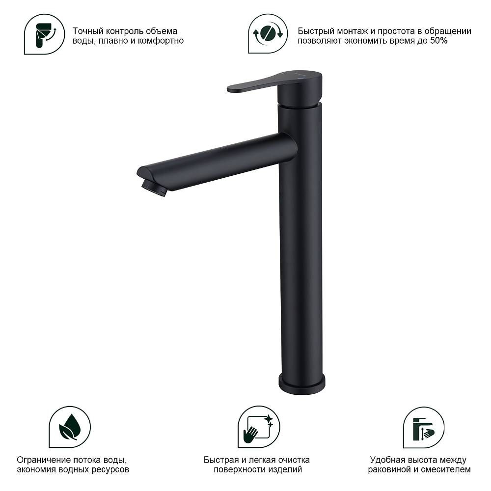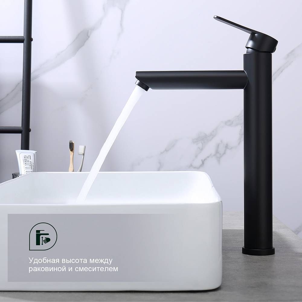 Высокий смеситель для раковины Splenka S223.15.06 чёрный купить