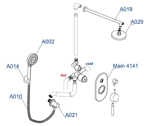 - Верхняя душевая насадка A029