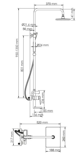 - Стойка для душа, Ø 24 мм регулируемая по высоте