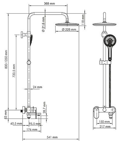 Размер верхнего душа, см:225