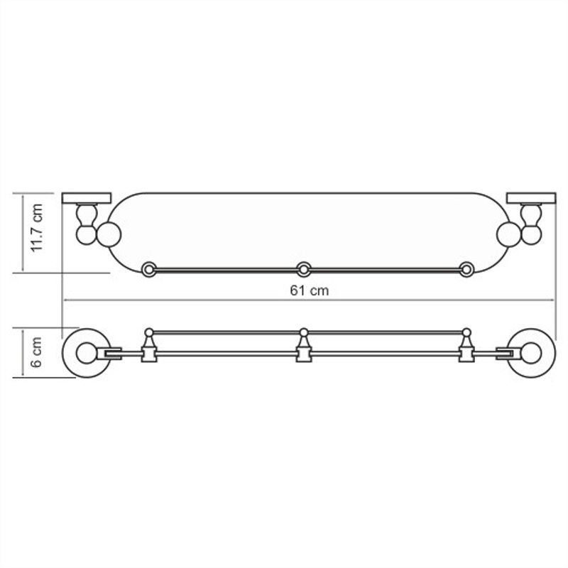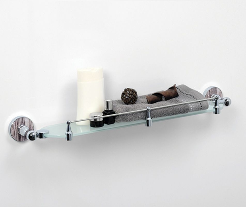 WasserKRAFT Полка стеклянная K-6944Размер: Ш610 х Г117 х В60 ммМонтаж: настенныйЦвет держателя: хром, акриловая вставка "обработанное дерево"Полка: матовое стеклоТолщина закаленного стекла: 6 ммМатериалы: металл, акрил, хромоникелевое покрытие, уплотнительные пластиковые кольца, закаленное матовое стекло