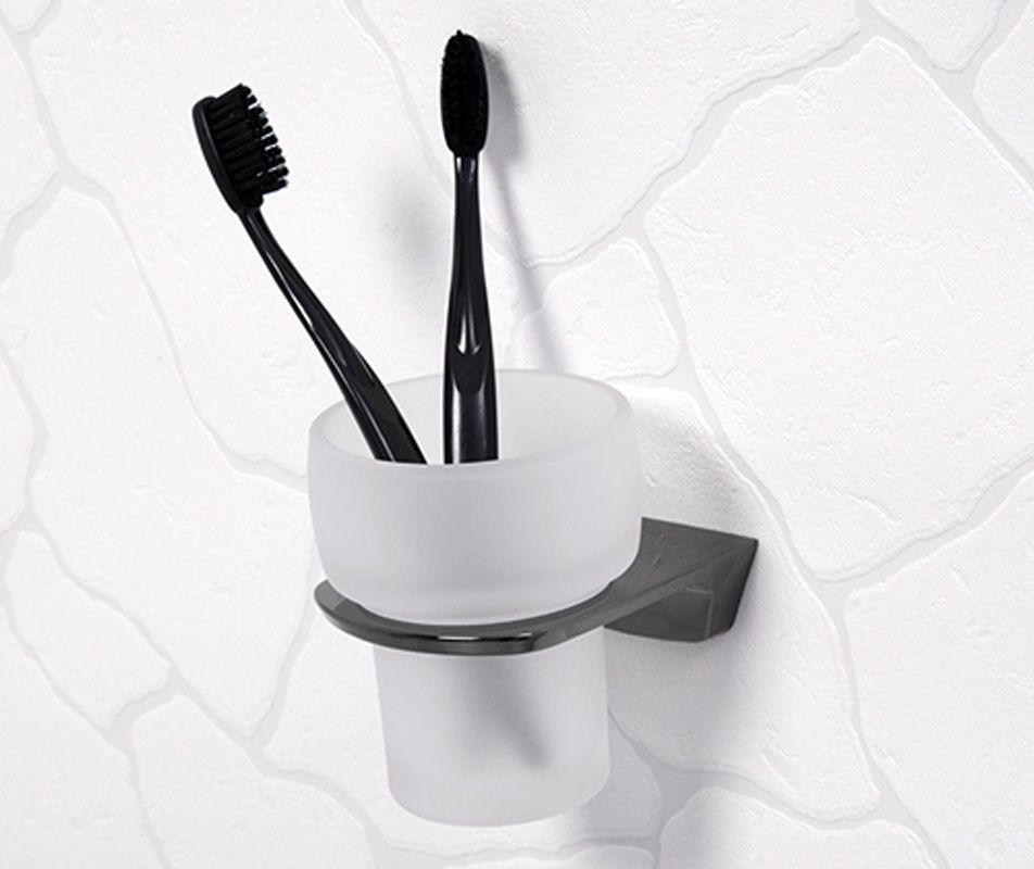 WasserKRAFT Стакан для щеток K-5128Размер: Ш84 х Г104 х В100 ммМонтаж: настенныйЦвет держателя: черный глянецСтакан: матовое стеклоМатериалы: металл, уплотнительные пластиковые кольца, матовое стеклоPVD-покрытие черный глянец
