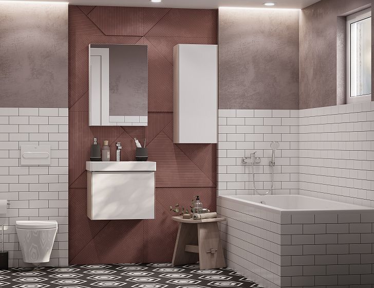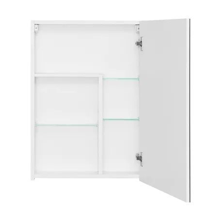 Зеркальный шкафчик АСТИ с несколькими полками в оригинальной конфигурации, позволяющей разместить флаконы с косметическими средствами разной высоты. Зеркальный шкаф подходит также к тумбам из коллекции МАРТИ.