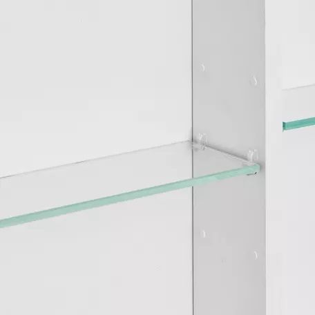 Зеркальный шкафчик АСТИ с несколькими полками в оригинальной конфигурации, позволяющей разместить флаконы с косметическими средствами разной высоты. Зеркальный шкаф подходит также к тумбам из коллекции МАРТИ.