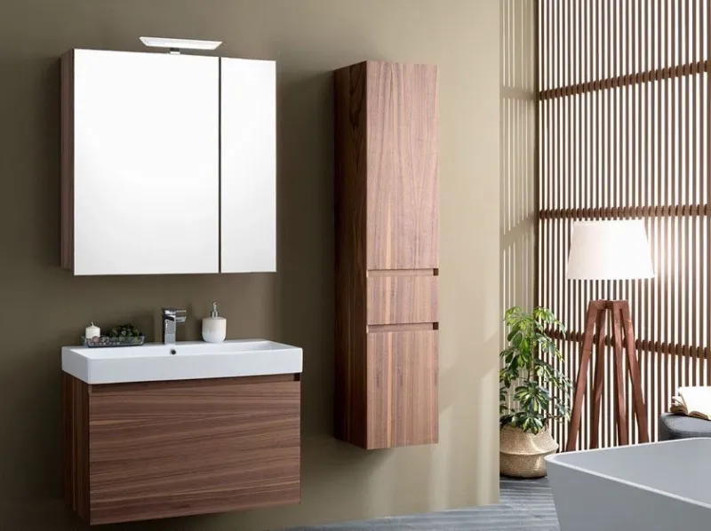 Зеркало-шкаф Aquanet Нью-Йорк 85 (орех) не нуждается в дополнительных декоративных деталях, живописной фурнитуре – шпон ореха, используемый в качестве покрытия, выполняет функции декорирования наилучшим образом. Зоны хранения в шкафчике шириной 85 см распределены по полочкам, скрытым за двумя фасадами, на которых закреплены зеркальные полотна, предназначенные для использования во влажных помещениях. Дверцы зеркал оборудованы петлями с доводчиком для плавного закрывания без громких хлопков. Корпус традиционно для мебели Aquanet выполнен из влагостойкой ЛДСП, фасады – из МДФ. ВНИМАНИЕ! Светильник на фото является базовым для данной модели, в стоимость не входит.