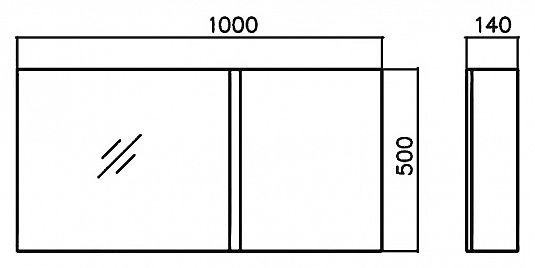 Зеркальный шкаф c одной подъёмной дверью с газовыми амортизаторами, одной распашной дверью с доводчиками, с двумя стеклянными полками