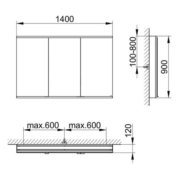 Зеркальный шкаф, алюминий серебристый анодированный,1400 x 900 x 120 mm,