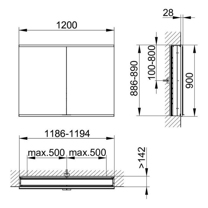 Зеркальный шкаф, алюминий серебристый анодированный,1200 x 900 x 160 mm,
