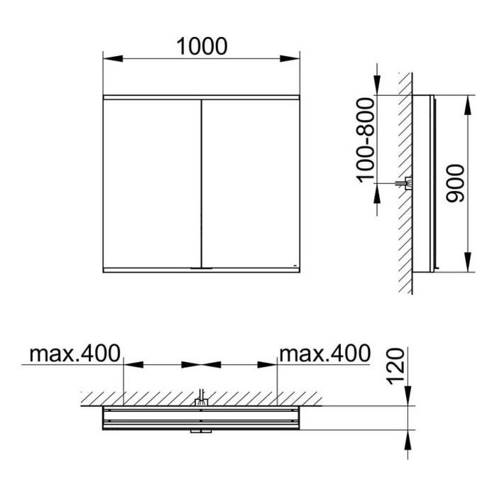 Зеркальный шкаф, алюминий серебристый анодированный,1000 x 900 x 120 mm,