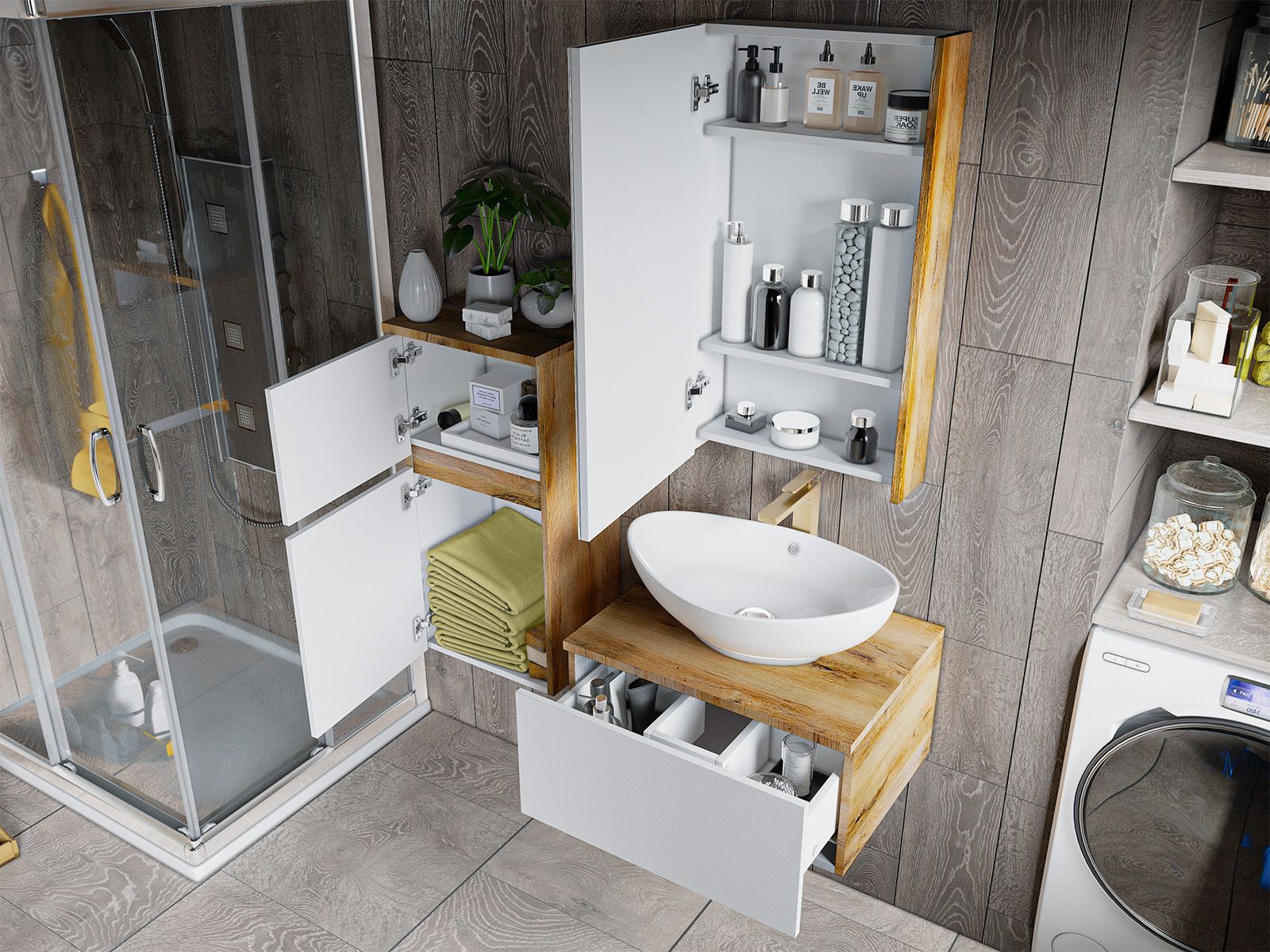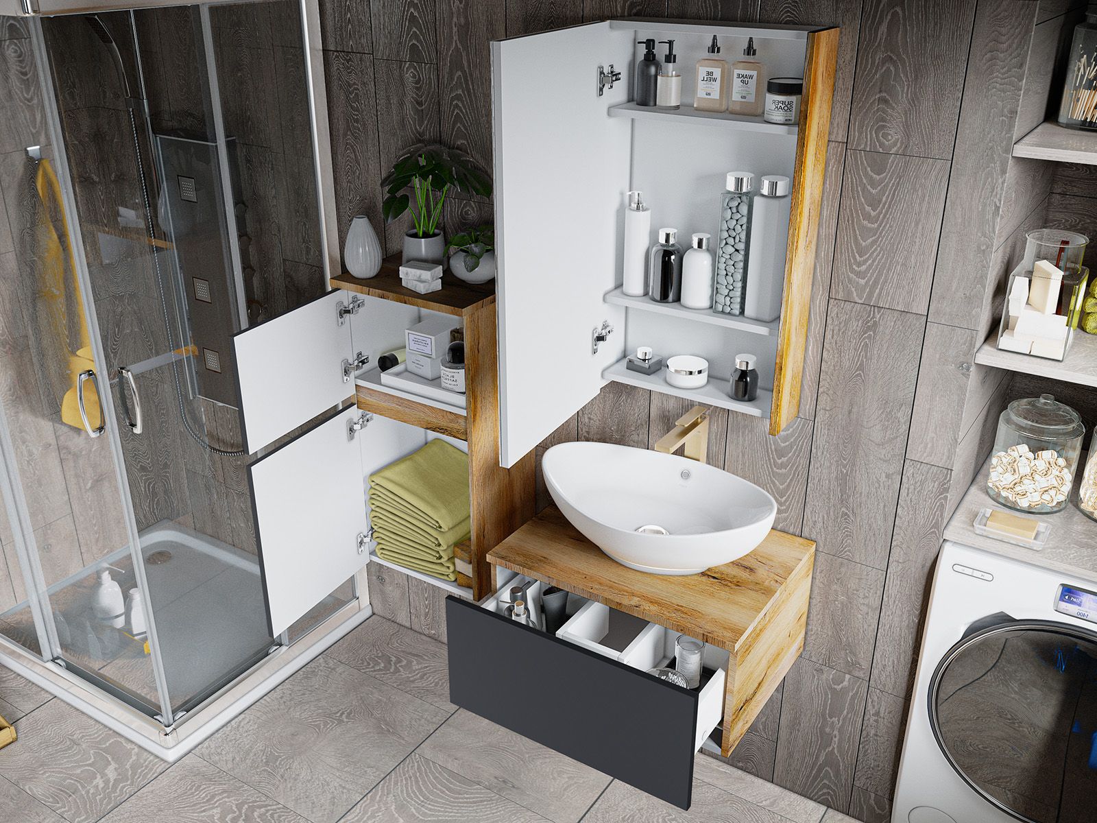 Зеркальный шкаф для ванной комнаты – это стильный акцент, который может преобразить любое пространство. С его элегантными линиями и продуманным дизайном, он идеально вписывается в современный интерьер. Внешняя поверхность шкафа, выполненная из качественных материалов, отражает свет, создавая ощущение простора и уюта.Внутреннее содержание шкафа умело организовано: разнообразные полки и отсеки позволяют удобно разместить все необходимые аксессуары – от косметики до бытовой химии. Зеркало, интегрированное в фасад, визуально расширяет пространство и облегчает утренние рутинные процедуры.Зеркальный шкаф для ванной комнаты – это идеальное сочетание красоты и практичности, которое станет незаменимым помощником в вашем дневном ритме.
