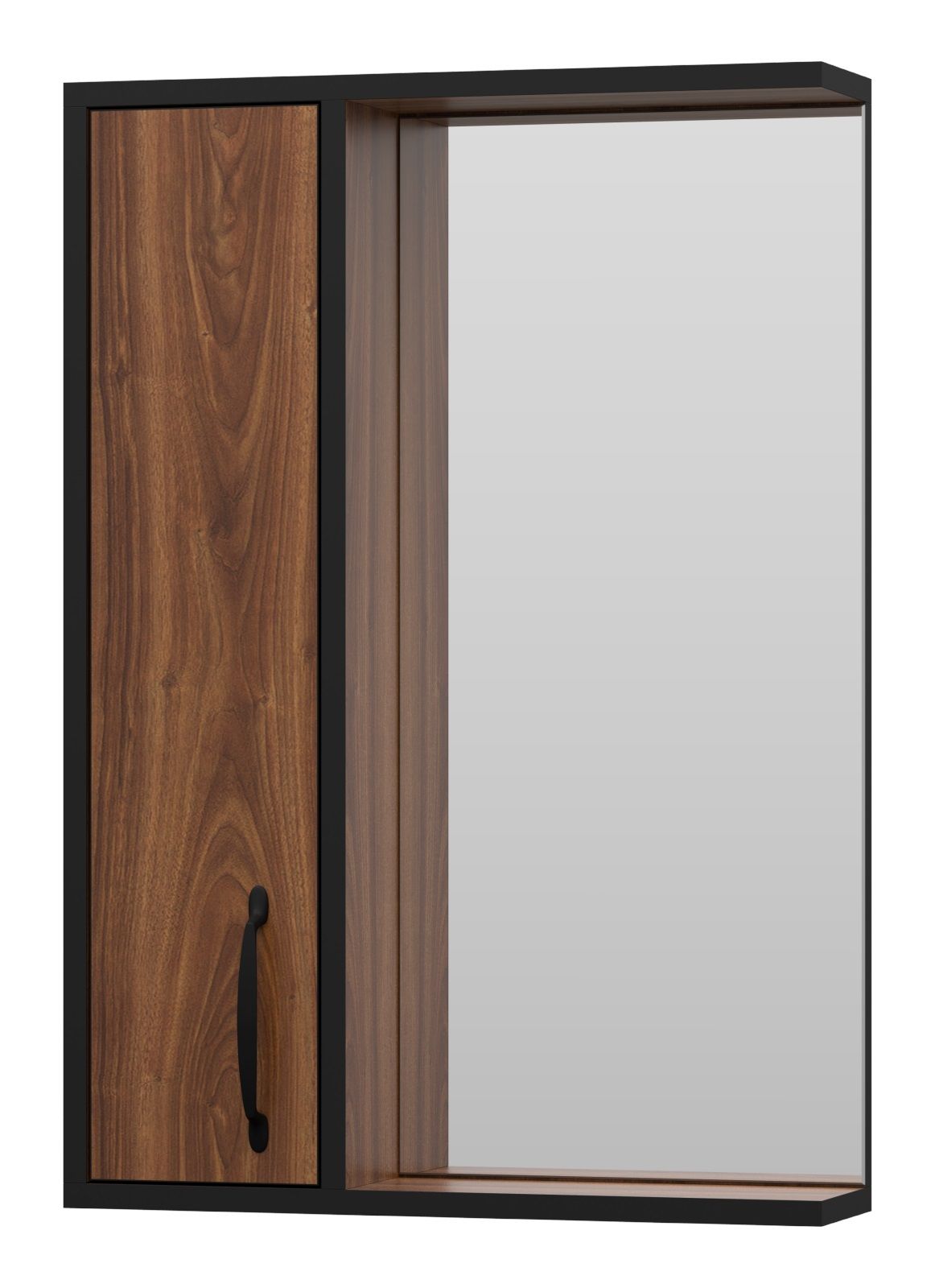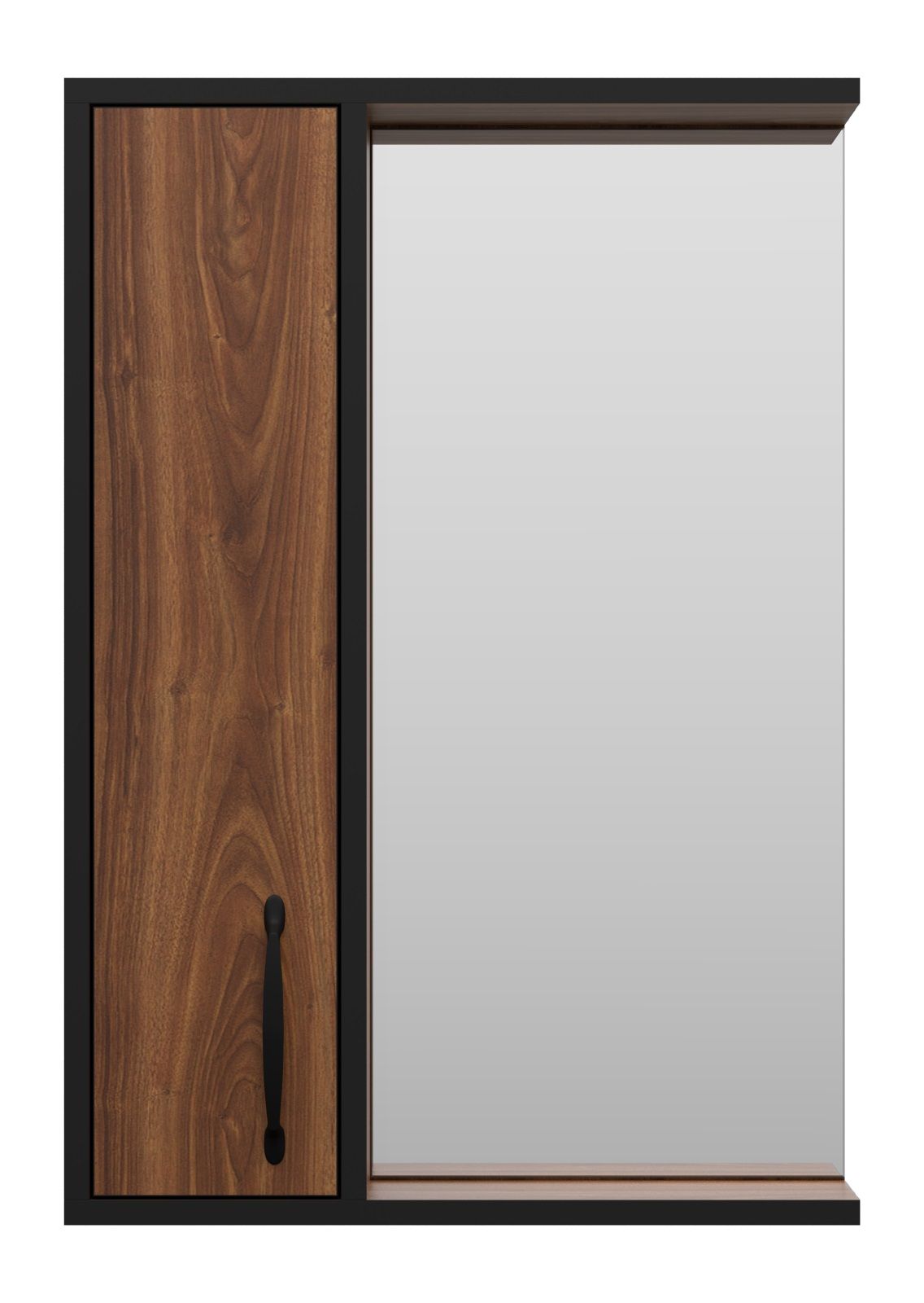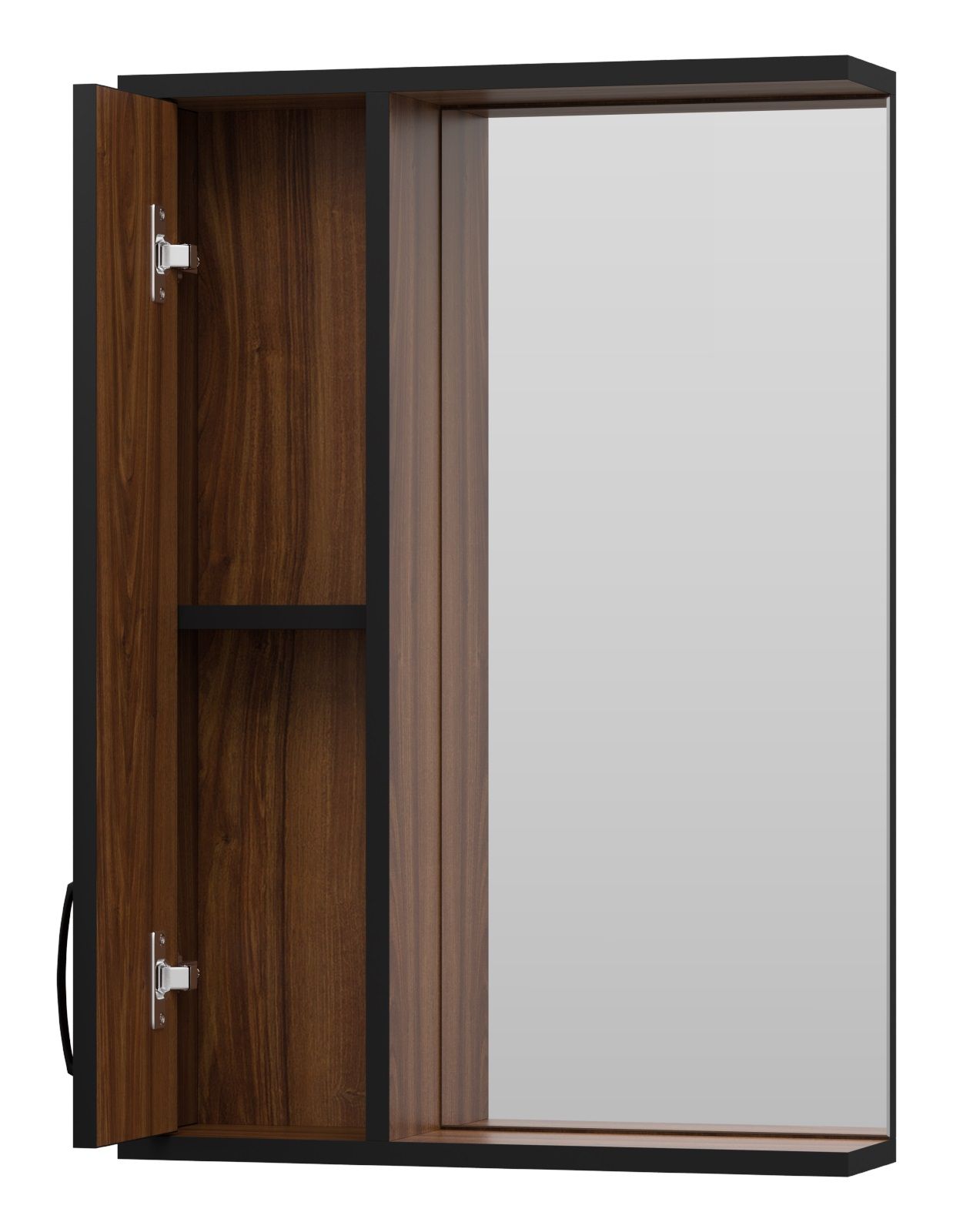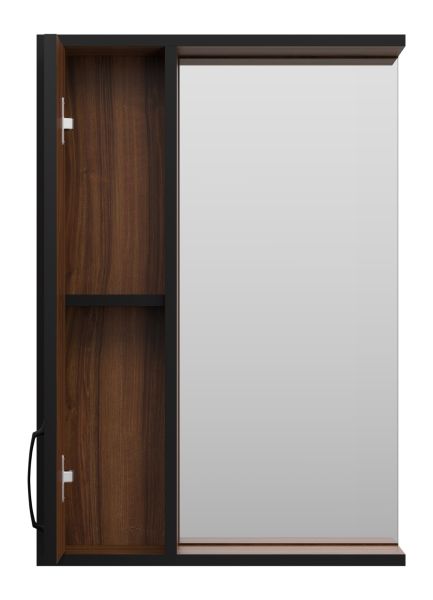 Зеркальный шкаф Misty Кедр 50см левый чёрный/орех купить