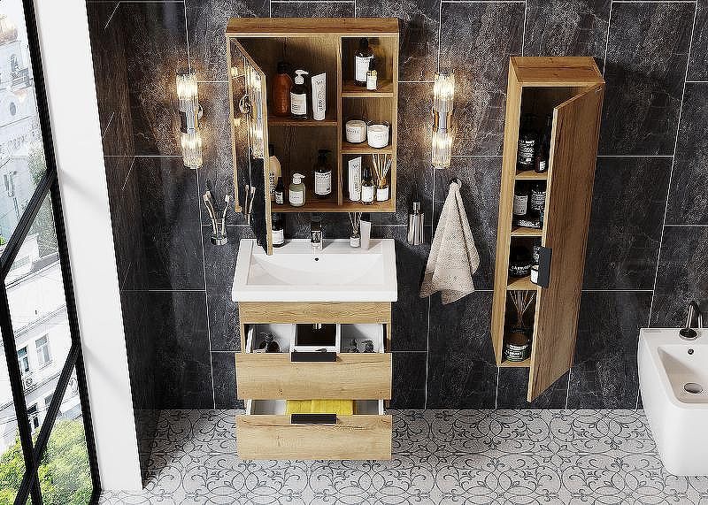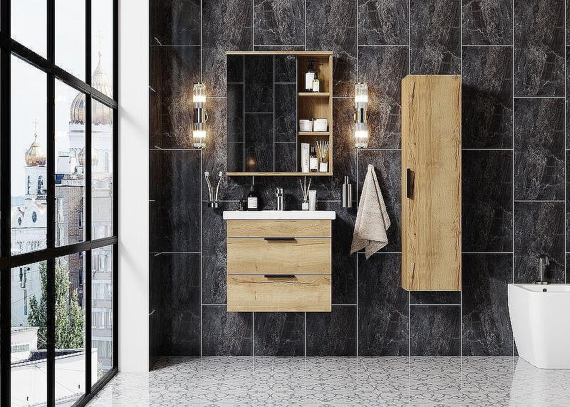 Зеркальный шкаф Onika ЛЕГРАН 70.00У — это сочетание насыщенного древесного декора и благородства металла: роскошная текстура и натуральный цвет дуба дают теплоту, а матовая металлическая ручка добавляет урбанизма и солидности.
