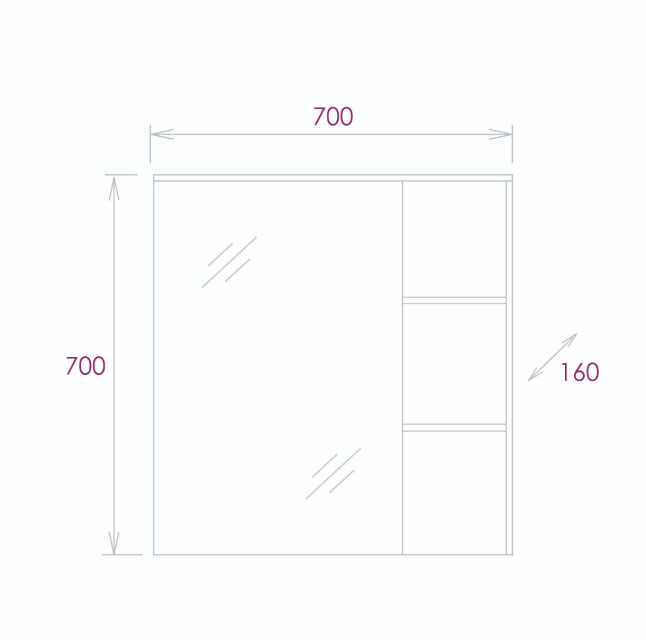 Зеркальный шкаф выполнен из ЛДСП, устойчивой к механическим воздействиям, перепадам температур и высокой влажности.