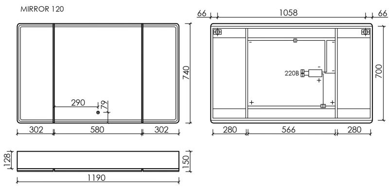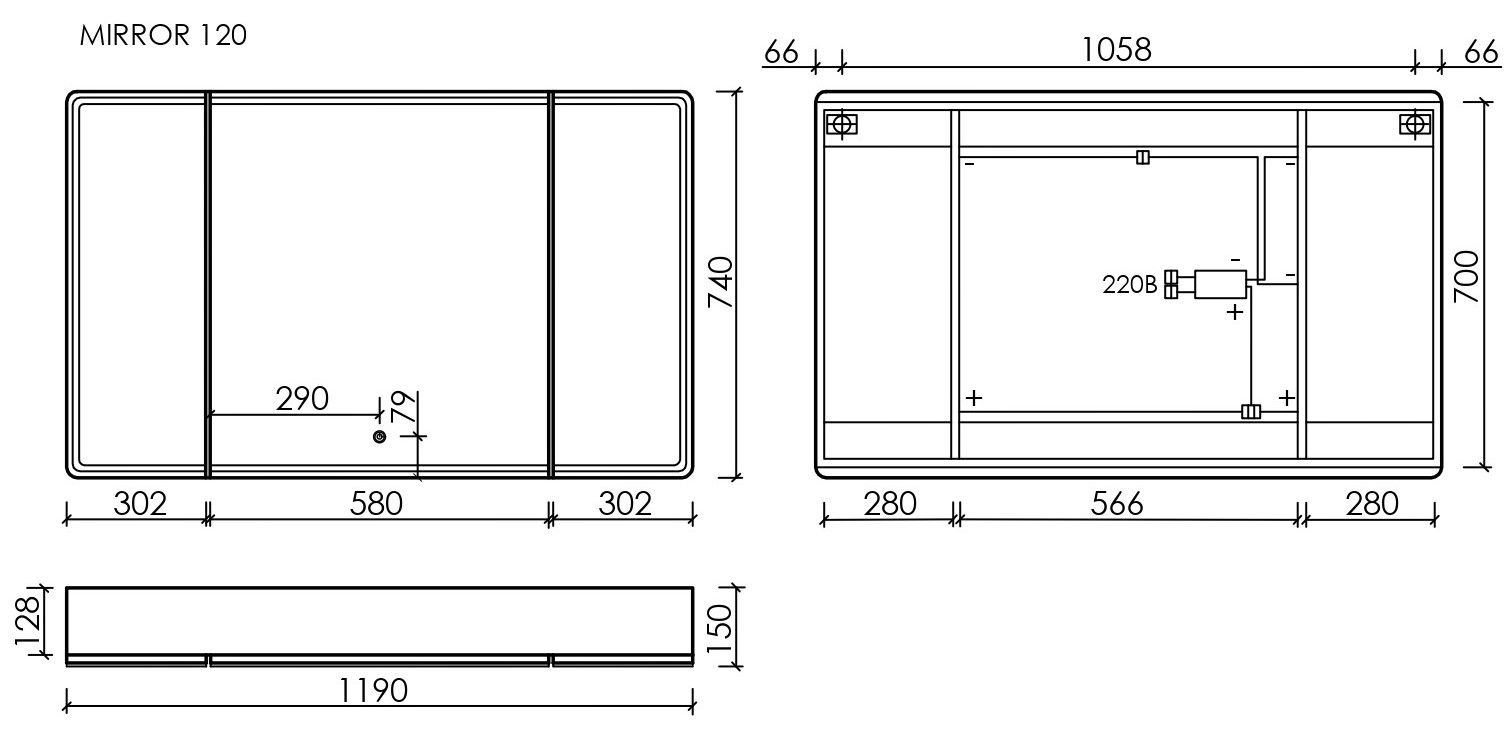 Зеркальный шкаф для ванной комнаты SANCOS Mirror 1190x150х740 мм, с LED подсветкой, корпус выполнен из лдсп цвет дуб чарльстон, диммируемое сенсорное управление подсветкой, арт. MI120ECH