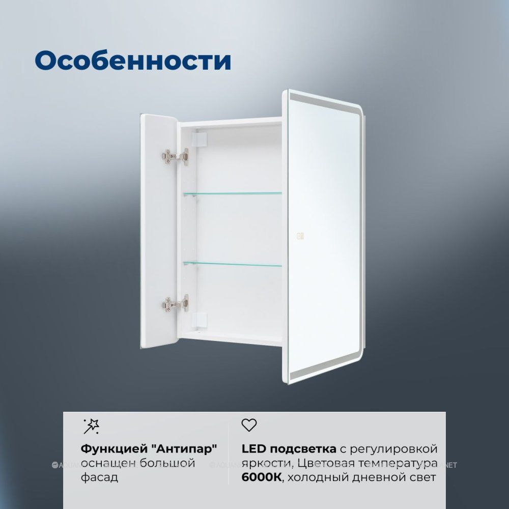 Зеркальный шкаф Aquanet Оптима 70 LED антипар — это современное и функциональное решение для вашей ванной комнаты. Он сочетает в себе стильный дизайн, умные технологии и практичность.