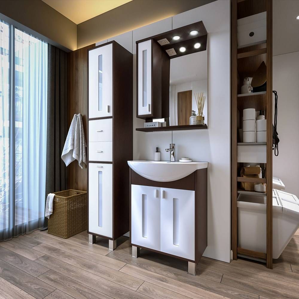 Зеркальный шкаф с подсветкой Бриклаер Бали 4627125411816 левый 62 см венге/белый купить