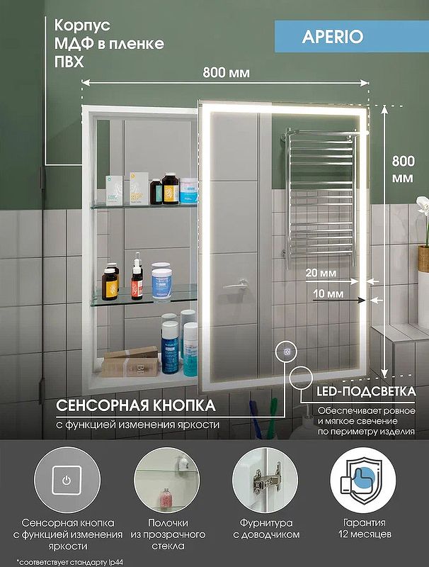 Зеркальный шкаф с подсветкой Misty Аперио 80см правый белый Зеркальный шкаф с подсветкой Misty Аперио 80см правый белый Казань 22990.00 {old_price} Misty