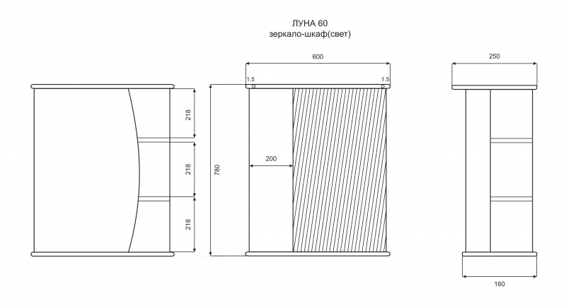 Зеркальный шкаф с подсветкой Misty Луна 60см правый белый купить