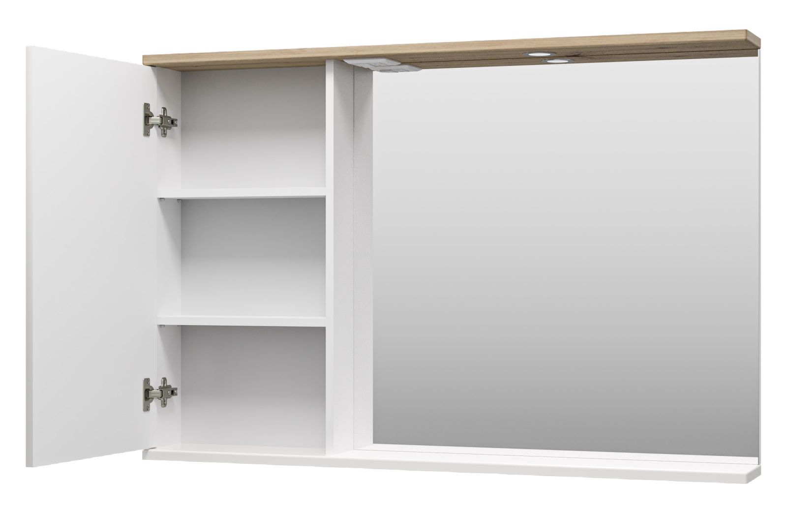 Зеркальный шкаф с подсветкой Misty Респект 120см левый белый/дуб Артизан купить