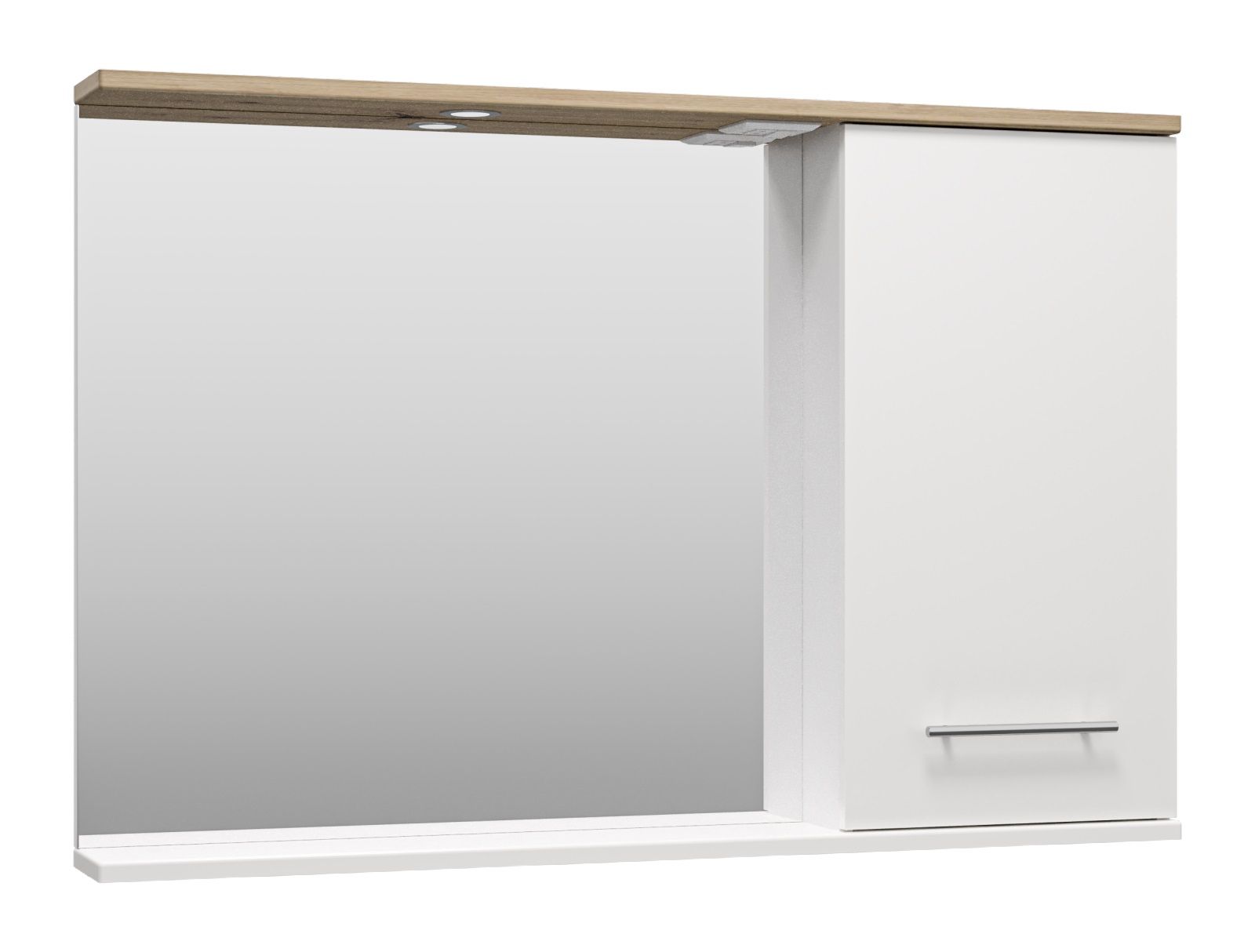 Зеркальный шкаф с подсветкой Misty Респект 120см правый белый/дуб Артизан купить