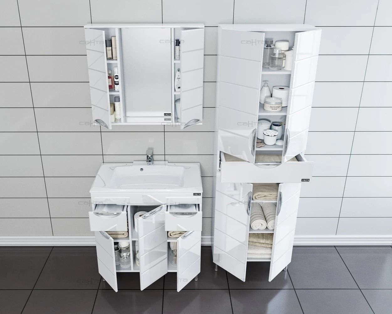 Зеркало-шкаф СанТа отличное решение для создания комфортной атмосферы в любой ванной комнате.В производстве используют только качественные влагостойкие материалы (ВЛДСП), в составе которых полностью отсутствуют опасные вещества. Серия Родос отличается превосходным дизайном с соблюдением всех существенных элементов современного стиля. Основным цветом, в котором выполнено шкаф-зеркало СанТа является белый, безупречно впишется в любой дизайн проект. Шкаф-зеркало предусматривает удобную и вместительную систему хранения, состоящую из дверей, полочек. Качественные доводчики позволяют обеспечить мягкое и тихое закрывание. Зеркало СанТа оснащено светодиодной подсветкой, позволяющей комфортно провести утренние процедуры.Страной бренда СанТа является Россия, все товары производятся с выполнением соответствующих стандартов качества, что позволяет быть полностью уверенными в долговечности и надежности. Зеркало-шкаф СанТа правильный выбор в современном дизайне ванной, придающий уникальность всему помещению, при этом сохраняя функциональность.