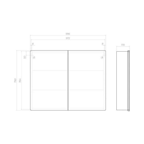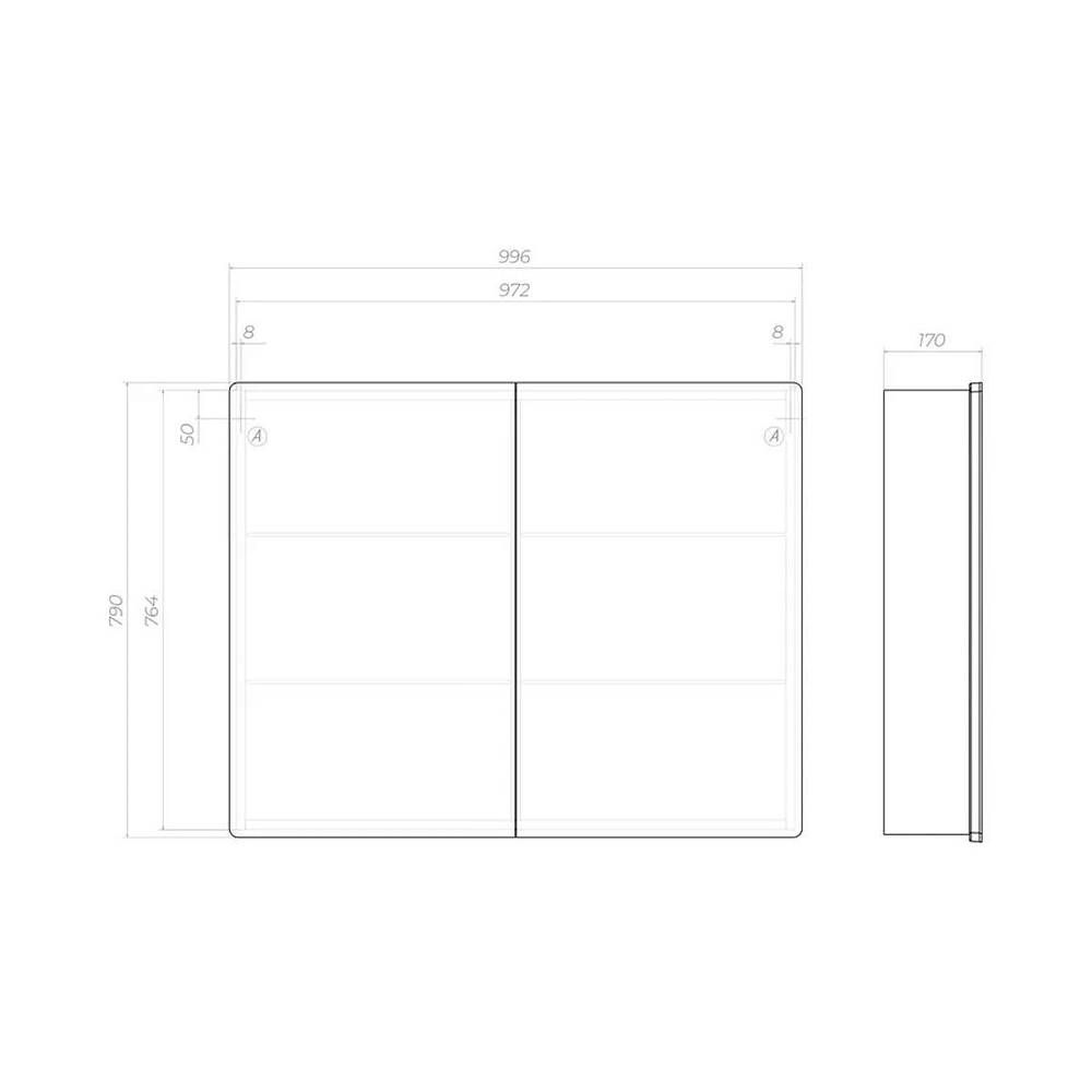 Зеркальный шкаф VIGO Geometry 119, 100 см. 2 дверцы, петли с механизмом доводчика, 4 стеклянных полки, светодиодная подсветка по периметру, бесконтактное включение (на взмах).