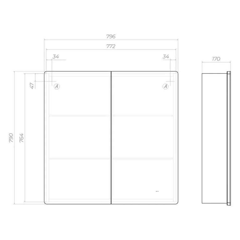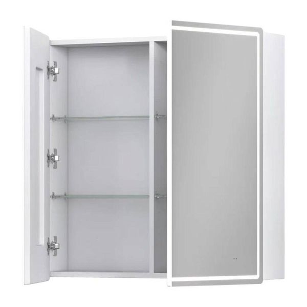 Зеркальный шкаф VIGO Geometry 221, 80 см. 2 дверцы, петли с механизмом доводчика, 4 стеклянных полки, светодиодная подсветка по периметру, бесконтактное включение (на взмах), функция антизапотевания.