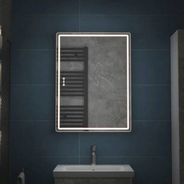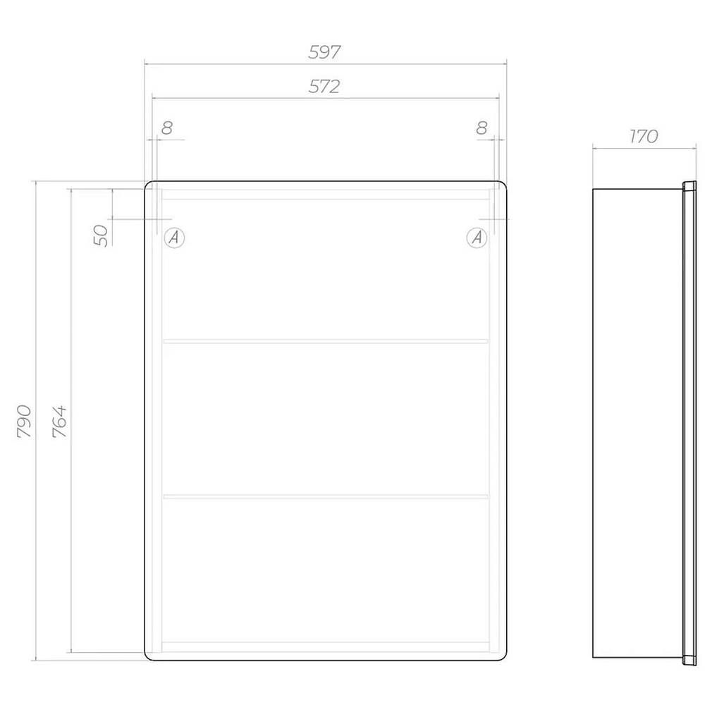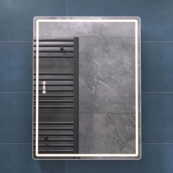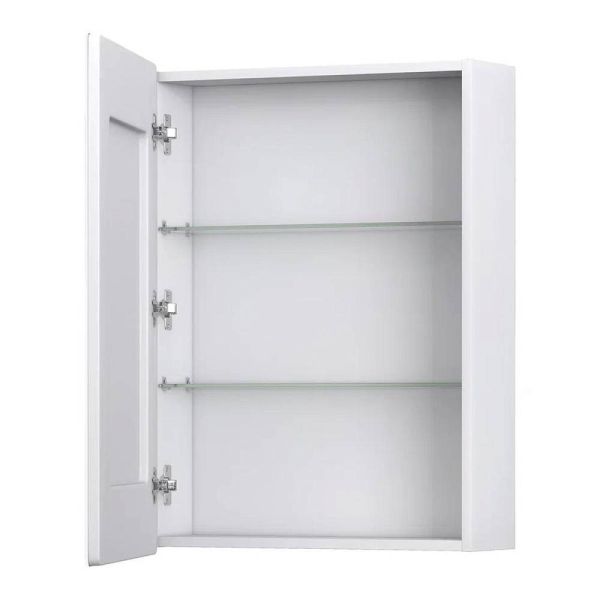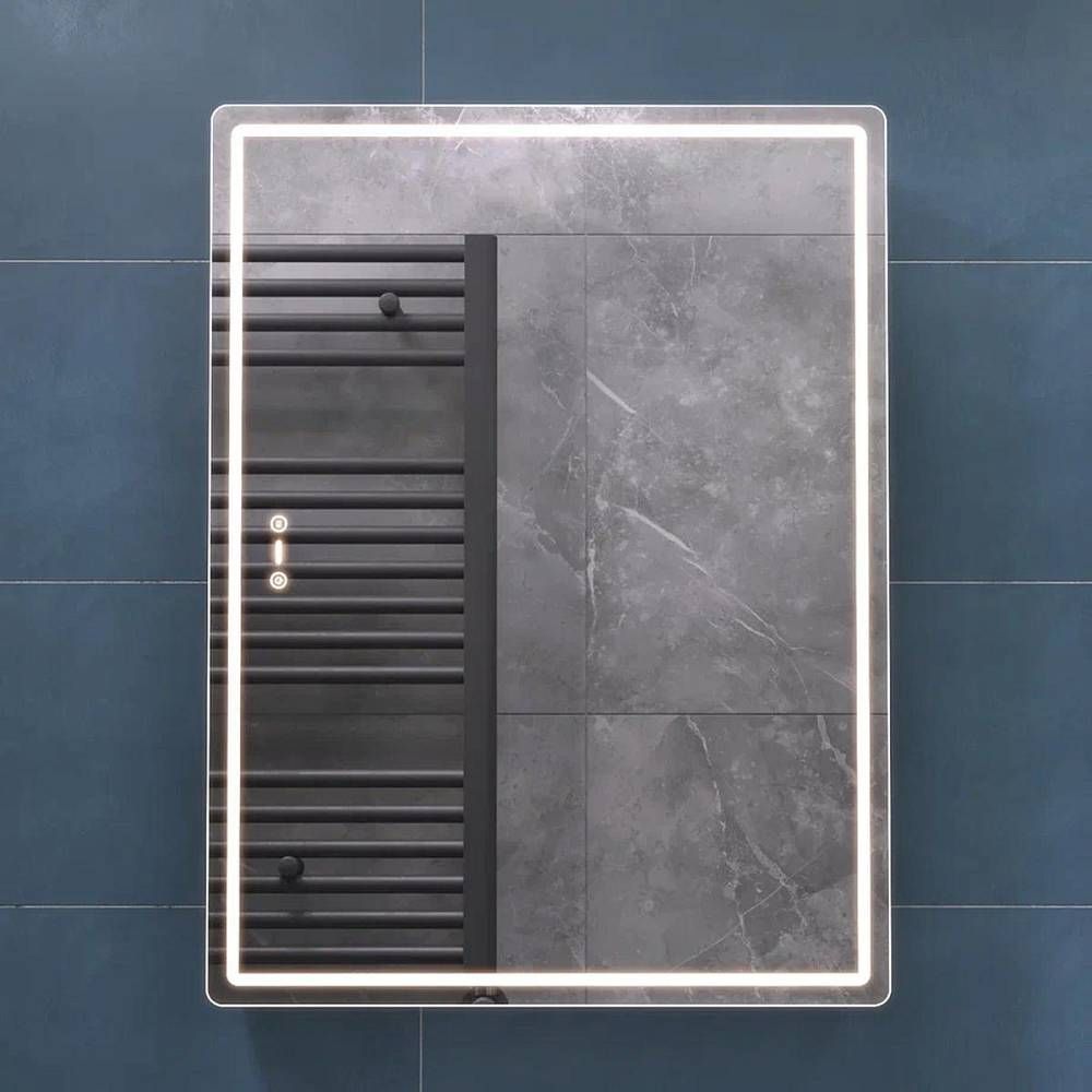 Зеркальный шкаф VIGO Geometry 301, 60 см. 1 дверца, петли с механизмом доводчика, 2 стеклянных полки, светодиодная подсветка по периметру, датчик присутствия, сенсорное включение, функция антизапотевания, диммер.