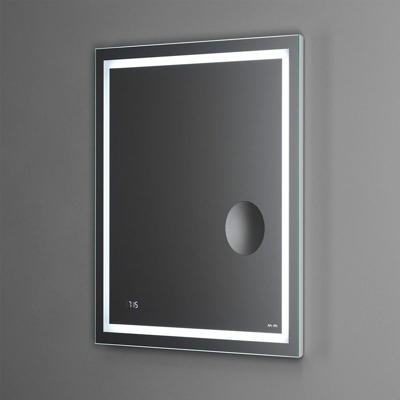 Ультрамодный лаконичный дизайн зеркал Gem от собственной студии дизайна AM.PM Design подойдет к интерьеру любой ванной комнаты. Премиальный функционал в коллекции доступного ценового сегмента: встроенное косметическое зеркало, увеличивающее изображение, и часы прямо под стеклом - всегда на виду.Усиленная LED-подсветка по периметру обеспечивает отличное рассеянное освещение и отсутствие теней. Срок службы светодиодов составляет более 30 000 часов.Скрытый механический выключатель сохраняет эстетическую целостность дизайна зеркала, а также гарантирует отсутствие отпечатков пальцев на зеркальном полотне. Зеркальное полотно премиального качества производства Бельгии. Гарантия 3 года.