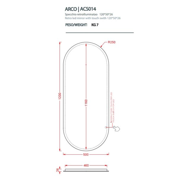 Зеркало Artceram Arco ACS014 с подсветкой купить