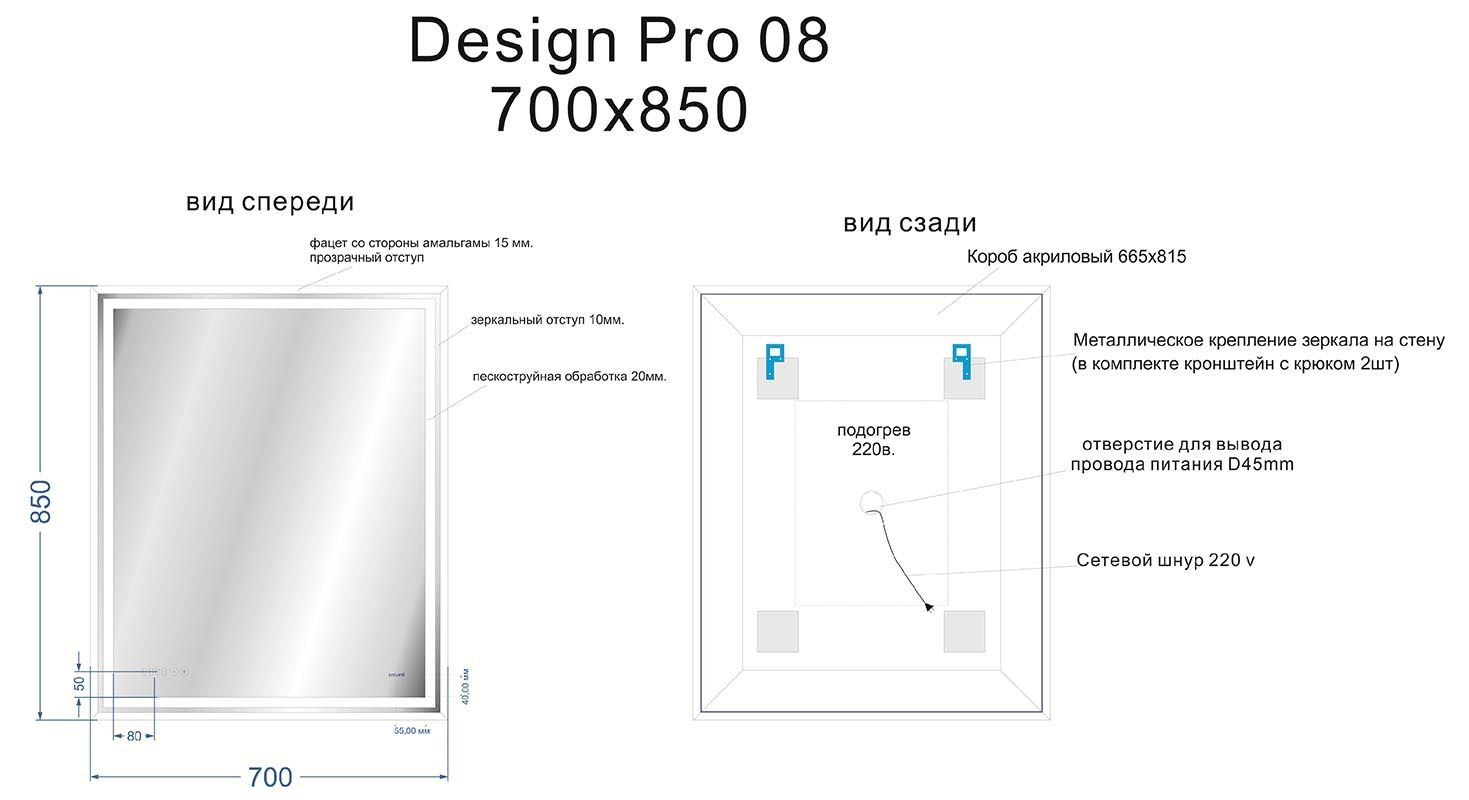 Зеркало Cersanit Design Pro LU-LED080*70-p-Os 70x85 см с антизапотеванием купить