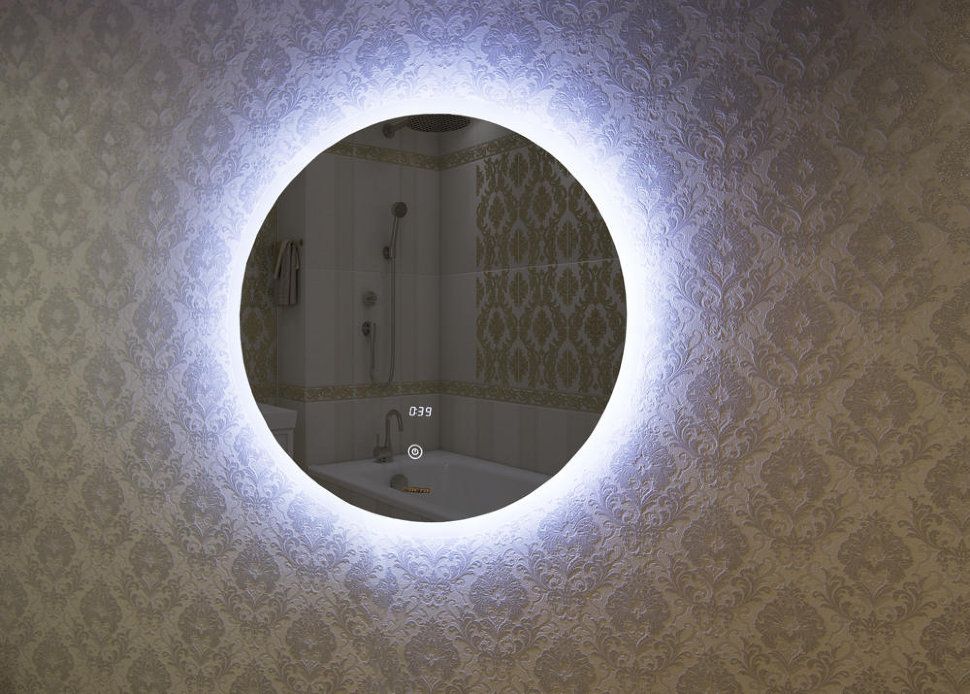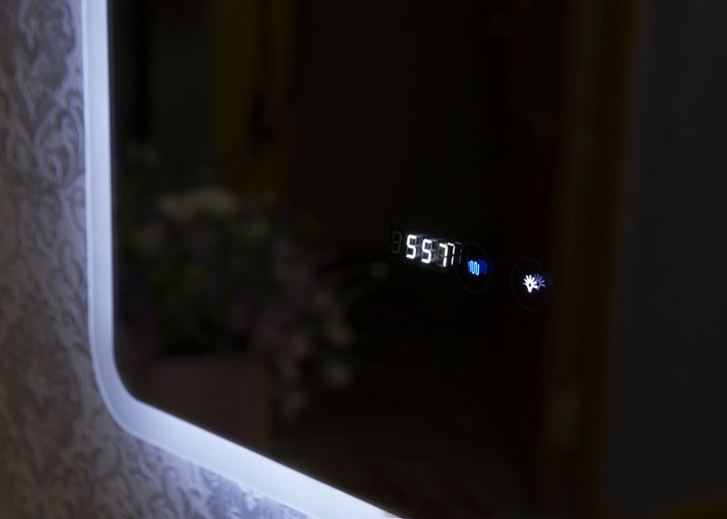Зеркало навесное функция антизапотевание (подогрев зеркала), датчик темпетаруры, электронные часы, LED подсветка