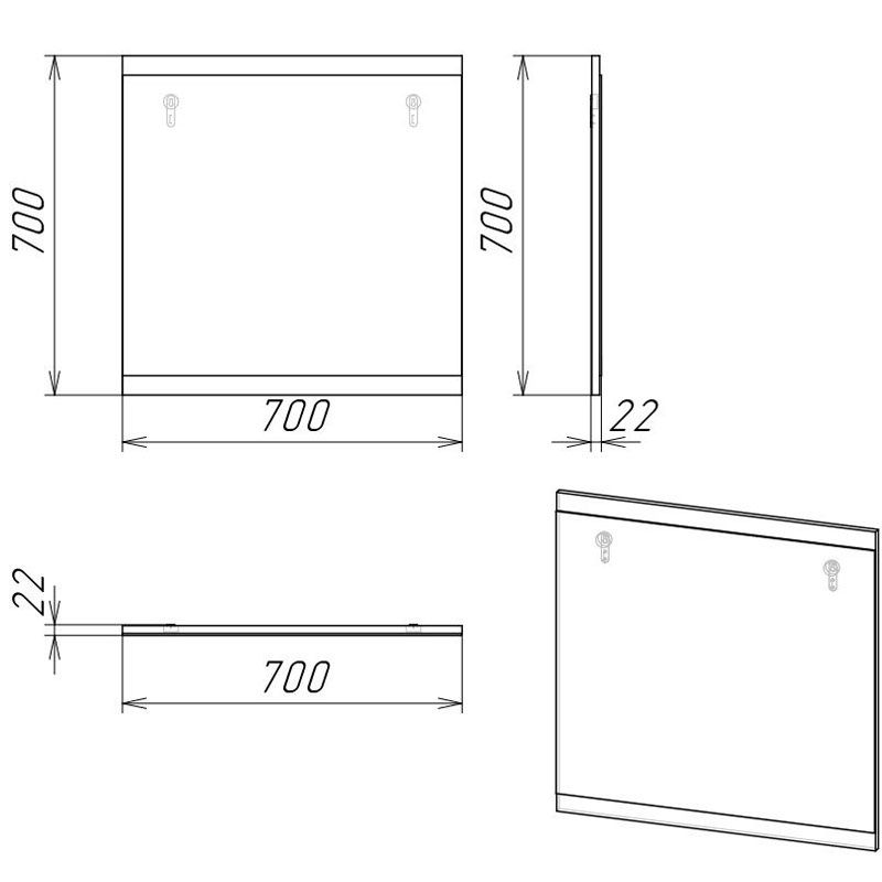 Габариты (ШxВxГ): 700x700x22 мм.