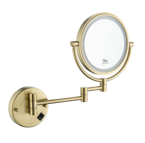 Зеркало косметическое настенное Aquatek AQ4912BG с подсветкой 5х шлифованное золото купить
