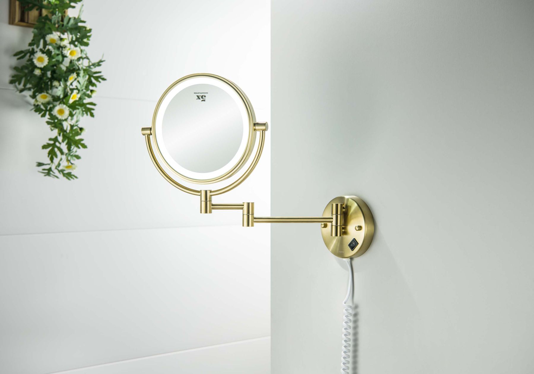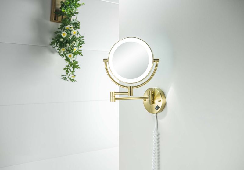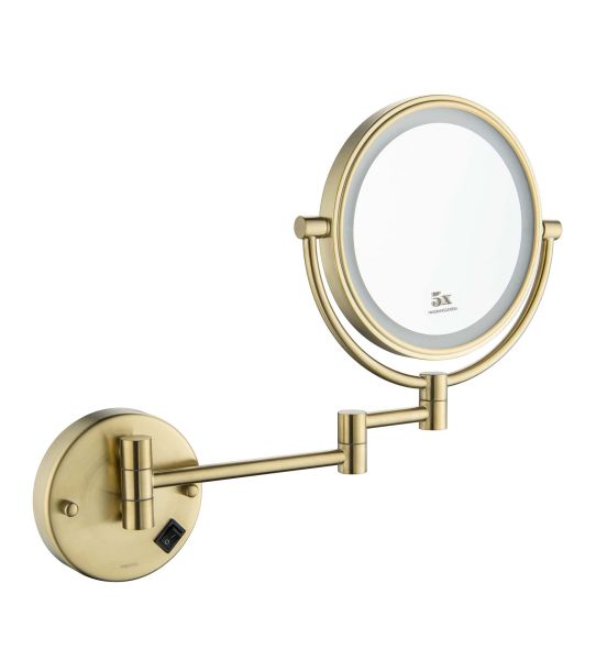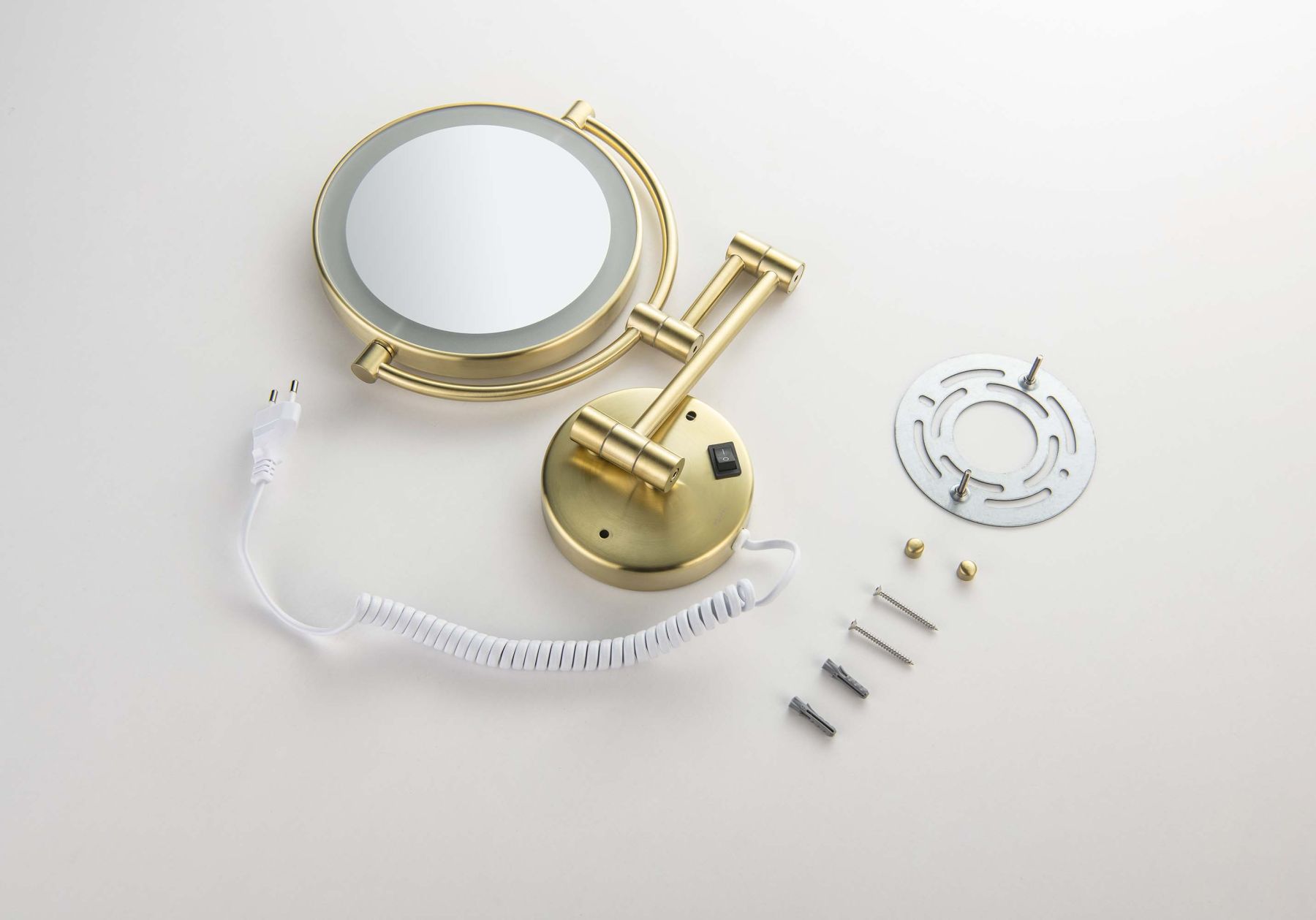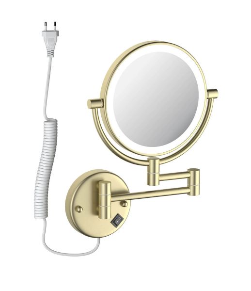 Зеркало косметическое настенное Aquatek AQ4915BG с подсветкой 5х шлифованное золото купить